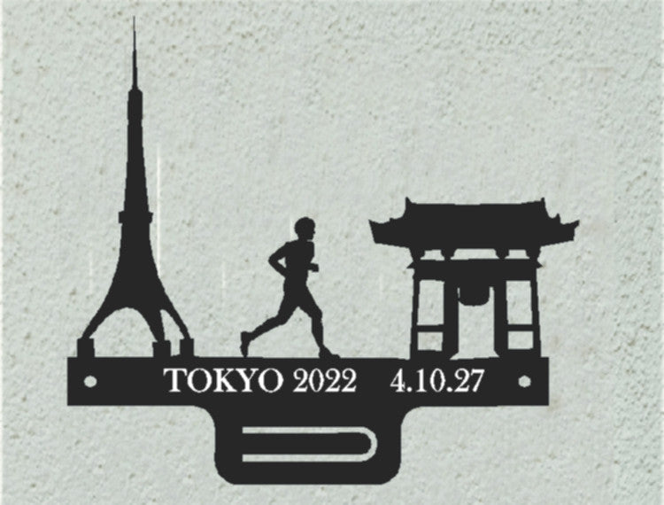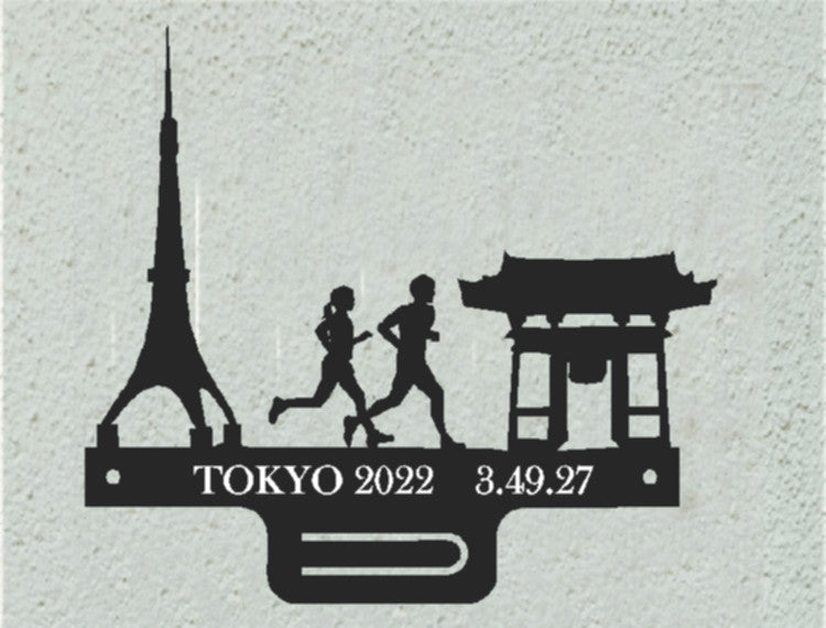 Choice of Styles, male runner, female runner, pair of runners or simply the Tokyo sky line. Add personalisation up to 20 characters. Name, Date, Time etc