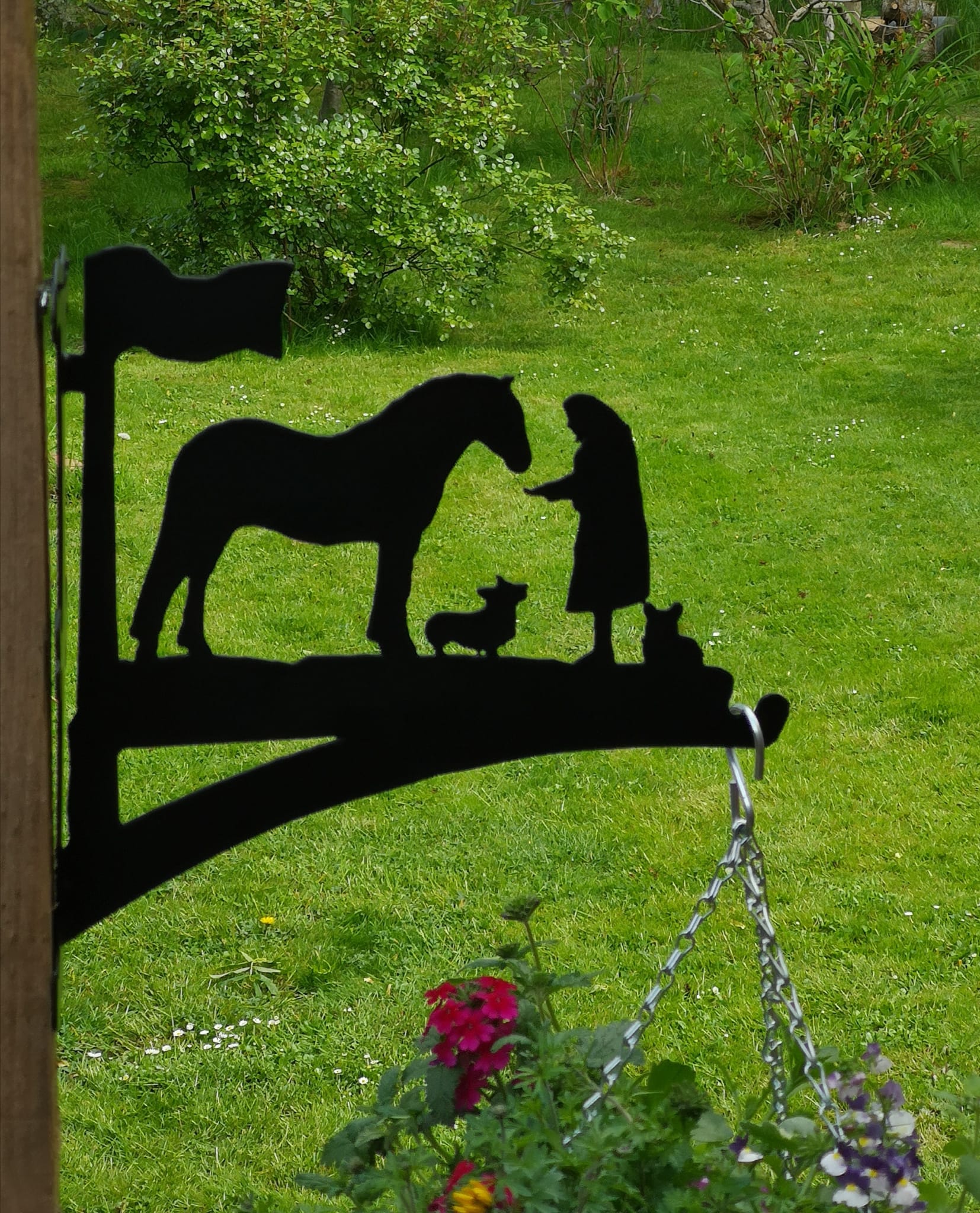 Beautiful, traditional, and classy, our hanging basket brackets are a great way to add a touch of personalisation to your garden, stable yard or front door. Hand-made in the UK from mild steel and coated in high density polyethylene, they look stunning in summer with a basket full of flowers, or they can serve as a wildlife saviour in the winter with a bird feeder hanging underneath. With over 1500 designs to choose from, including horses, dogs, cats, pets, hedgehogs, birds, and lots more, they also make the perfect gift. Approximately 33cm long x 30cm high, These Hanging Basket Brackets are designed to take a 12” Hanging basket.
