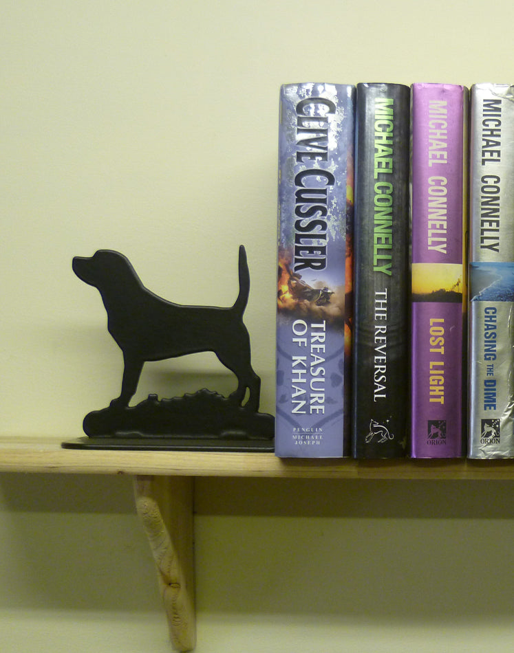 Our pair of beautiful metal bookends are heavy and substantial. They look lovely on the book shelf and will support your books in style! Each bookend measures approximately 20cm high x 20cm long x 12cm deep. Note that the design on this product will not include any background, i.e. it will only feature the animal or other custom motif. We also offer bookends without any motif for simpler shelves. Browse all our handmade metal bookends below.