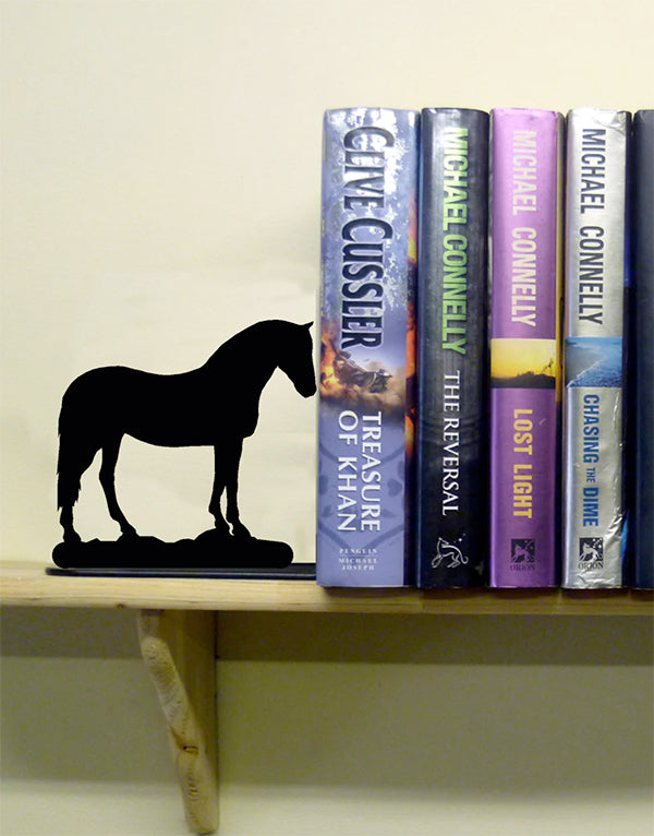 Our pair of beautiful metal bookends are heavy and substantial. They look lovely on the book shelf and will support your books in style! Each bookend measures approximately 20cm high x 20cm long x 12cm deep. Note that the design on this product will not include any background, i.e. it will only feature the animal or other custom motif. We also offer bookends without any motif for simpler shelves. Browse all our handmade metal bookends below.