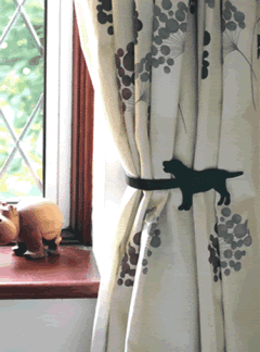 A subtle, yet ornamental pair of Curtain Hold Backs, designed to be as attractive as it is useful. Sometimes referred to as Curtain Tie Backs these traditional items are becoming more popular, and ours are no exception. Handmade from 2mm mild steel, and finished in a High Density Polyethylene, they make an affordable gift that supports traditional home making.
