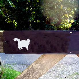 These metal gate plates are designed to fit the top bar of a wooden five-bar gate. Subtle yet stylish, available with either white or gold vinyl lettering, our gate plates come in a variety of designs so you can select the perfect motif for your property! With no overhang or protrusions, this gate sign is designed to be seen without causing any obstruction. We offer large gate plates with dimensions of 10cm x 60 cm, as well as medium gate plates that are 7.5cm x 40cm. Browse all our metal gate signs below.