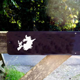 These metal gate plates are designed to fit the top bar of a wooden five-bar gate. Subtle yet stylish, available with either white or gold vinyl lettering, our gate plates come in a variety of designs so you can select the perfect motif for your property! With no overhang or protrusions, this gate sign is designed to be seen without causing any obstruction. We offer large gate plates with dimensions of 10cm x 60 cm, as well as medium gate plates that are 7.5cm x 40cm. Browse all our metal gate signs below.