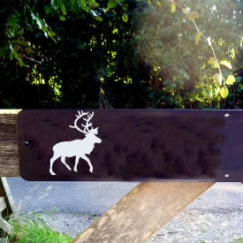 These metal gate plates are designed to fit the top bar of a wooden five-bar gate. Subtle yet stylish, available with either white or gold vinyl lettering, our gate plates come in a variety of designs so you can select the perfect motif for your property! With no overhang or protrusions, this gate sign is designed to be seen without causing any obstruction. We offer large gate plates with dimensions of 10cm x 60 cm, as well as medium gate plates that are 7.5cm x 40cm. Browse all our metal gate signs below.