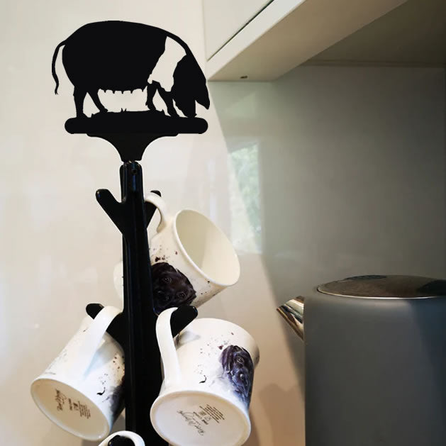 Our handmade black metal mug trees are designed to hold 6 mugs each, with a metal animal motif at the top for a bit of fun! Available in hundreds of designs, these metal mug hangers are finished in a polyethylene coating to protect your mugs. If you love the look, make sure to check out our other kitchen-friendly items – you can even get a matching kitchen roll holder or sink tidy. Browse all our iron mug trees in the collection below.