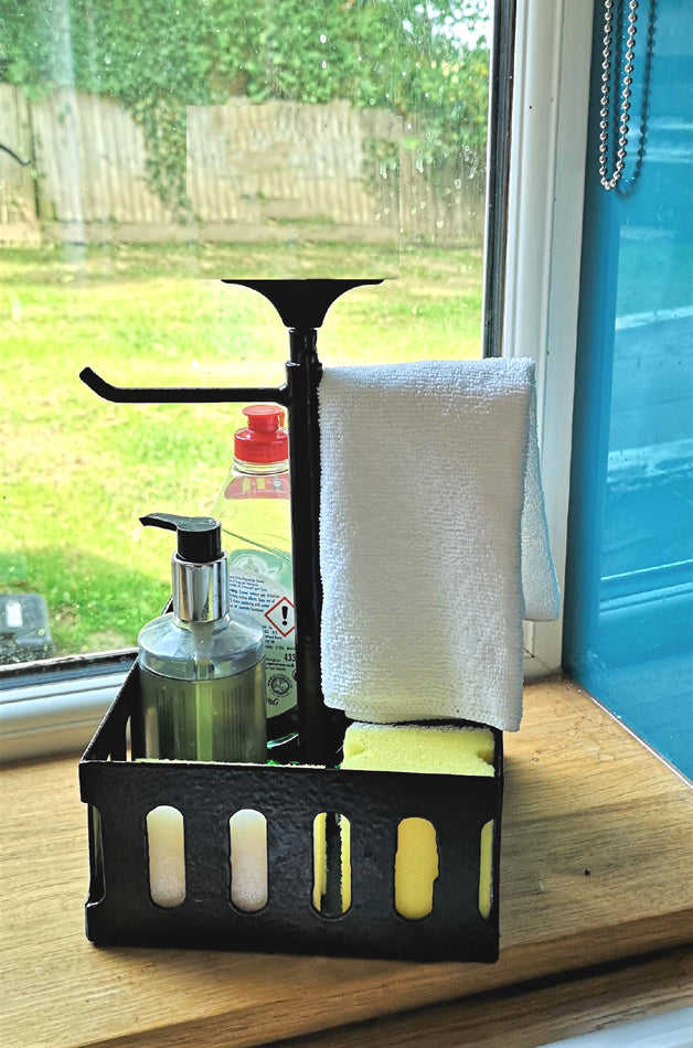 Say goodbye to messy worktops. This Sink Tidy stores all your washing up liquid, sponges and more with bar to hang washing up clothes. Our sink organiser Looks great in the Kitchen or Bathroom, why not pair it with one of our beautiful Hand Stand soap dispenser Caddies.