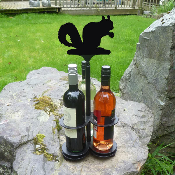 Just the thing for the wine lover in your life: the custom metal wine bottle holder, aka the wine wizard. This tabletop wine rack holds three bottles of wine or spirits, making it the perfect thing to bring out during a party! Each wine carrier stands on a heavy clover-shaped base with ball feet, revolving effortlessly for selection. It looks great on the table and is sure to be a talking point. Browse all metal wine bottle holders below.