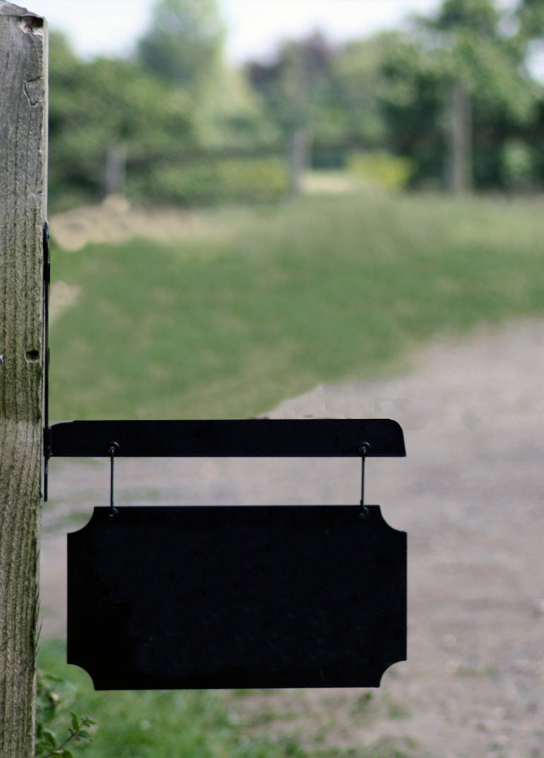 One of our staple products, our hanging signs look absolutely stunning on any property. Drawn by our in-house designers and Hand-made in the heart of Sussex, these signs are built to last. Cut from 3mm steel and coated in high density polyethylene to provide a weatherproof finish, they are incredibly sturdy and of exceptional standard. With a huge range of designs to choose from, including dogs, horses, wildlife, farmyard (including lots of tractors!), transport, and more, there is sure to be something to suit everyone! Measuring approximately 45cm long x 45cm high, our 18” hanging signs look great on any property. They look particularly good on, larger semi-detached houses, completely detached dwellings, stables, barns, at the end of the drive, or farm buildings. The hanging plate is sized to suit the name required (ie deeper plate for two or more lines), and the white lettering stands out brilliantly, even on the darkest nights. Need a bigger wall-mounted swing sign? Check out our 20” range