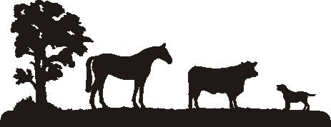 Available on coat racks, boot racks, whip racks, 6 hook key racks and as a silhouette, this panoramic design depicts 3 classic homestead animals.