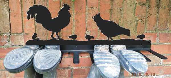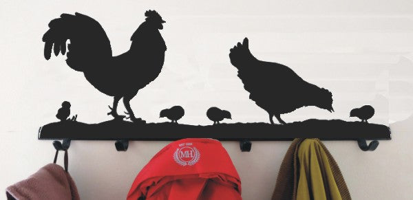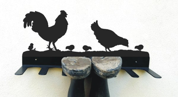 Available on coat racks, boot racks, whip racks, 6 hook key racks and as a silhouette.