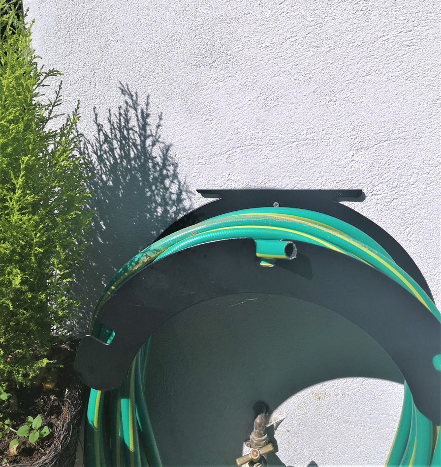 This practical Hose Tidy screws on to the wall above the tap and holds your hose pipe neatly coiled. Push the end of the hose into one of the slots and it will always be to hand. Our ornamental Hose reel takes up to a 30M hose.